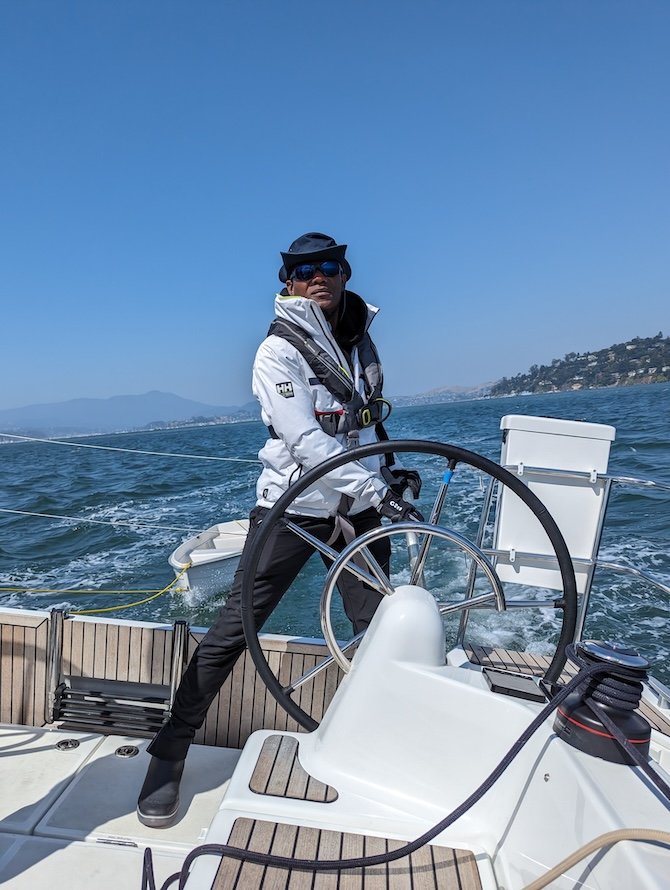 Decades after my transformative experience on Love Beach, I finally fulfilled my dream of sailing in August 2022. My first opportunity was in a sailing class with an instructor and three other students in my adopted homeland of California. I was sitting on the topside of the short freeboard on a 25-foot Colgate sailboat, feeling as if I was moving on the surface of the water itself, learning quickly that the ocean is always completely in charge.